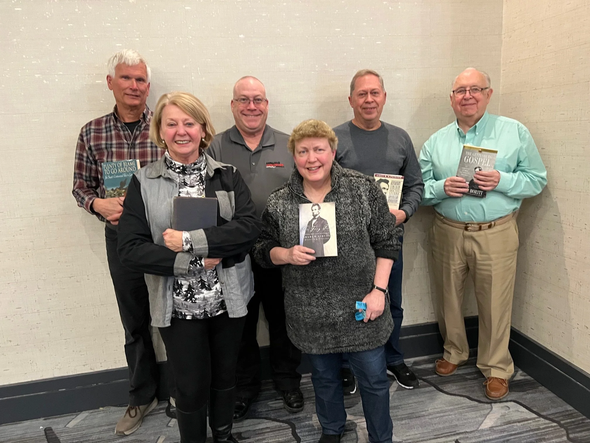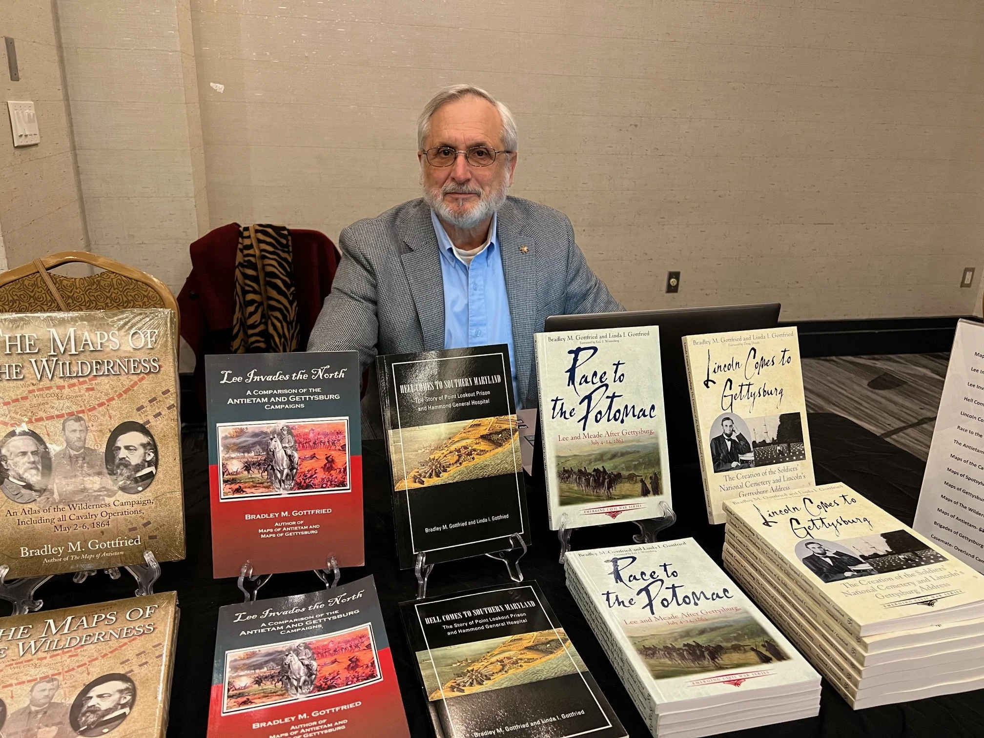 The museum was free, but we did accept donations. We used extra books from our inventory and original minie balls in cases as incentives as folks did indeed make donations. (Jack made a special trip to Gettysburg to buy more bullets.) Alan Lowcher, Jeff Stocker, Michael Harris, Don Levick as a CW surgeon, Dr. Robert Hicks as a CW surgeon, Lou DelBianco as Abraham Lincoln, Ken Serfass as U.S. Grant, Bruce Mowday and Ed Root all made presentations which drew in visitors.
