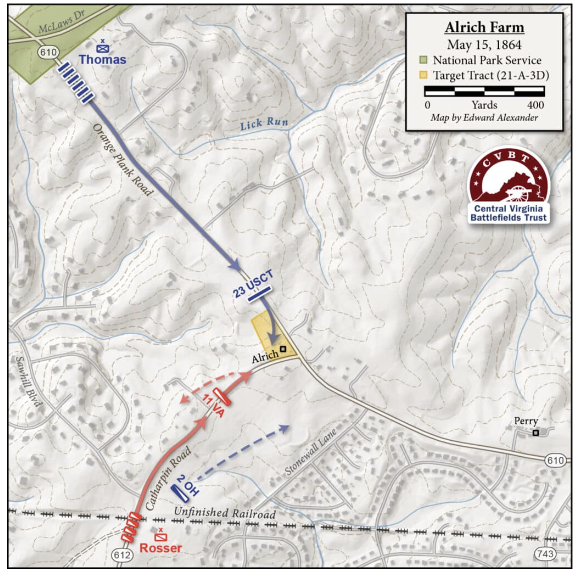 Although the fighting at the Alrich Farm was a minor affair compared to other battles in central Virginia, it was the first time that the USCTs fought against the Army of Northern Virginia.